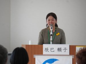 第二部では、清泉女子大学地球市民学部の辰巳頼子教授が「フィールドワークで得た学びを行動へとつなげるために」と題して講演を行いました。初めに辰巳教授は、「平和する」という言葉を紹介し、この言葉を通じて、人々が普段から平和な状態をつくるために行う身近な実践や行為に目を向けることができると述べました。そして、「平和する」行為に気付くことは、社会課題について学ぶ際の重要なプロセスである「知る」「感じる」「行動する」というプロセスへとつながると指摘しました。また、文化人類学におけるフィールドワークの特徴として「参与観察」という方法を紹介し、現地の人々の生活の中に身を置き、日常を共にする中で理解を深めていくことの重要性を語りました。