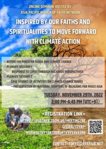 11月29日、ACRPアジア太平洋女性信仰者ネットワーク(APWoFN)主催のオンライン環境セミナーについてご案内させていただきます。